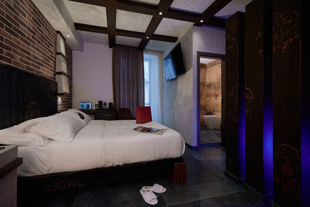 Scegli una camera con balconcino: svegliati con la città ai tuoi piedi, sorseggia un caffè all’aria aperta, goditi un letto queen size alto 27 cm e la sera rilassati davanti a uno schermo da 55 pollici. Un mix di comfort e vita urbana, tutto a portata di mano.